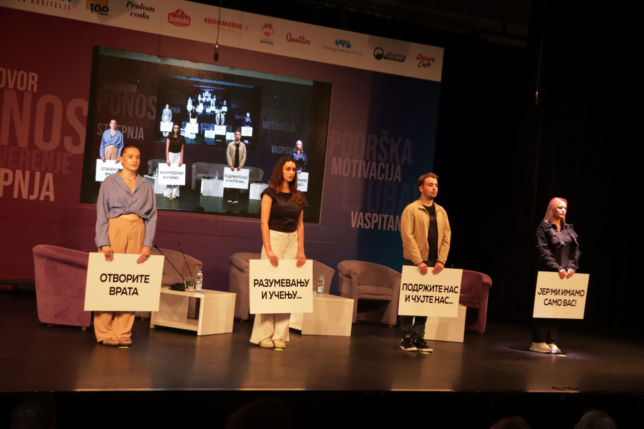 U razgovoru o tome koju ulogu ponaosob imaju otac i majka u vaspitanju deteta govorili su Darija Kisić, ministarka za brigu o porodici i demografiju, Jelena Stanivuković psiholog, kao i dvojica očeva – Marko Kešelj, državni sekretar u Ministarstvu sporta i Miloš Andrović biznismen.